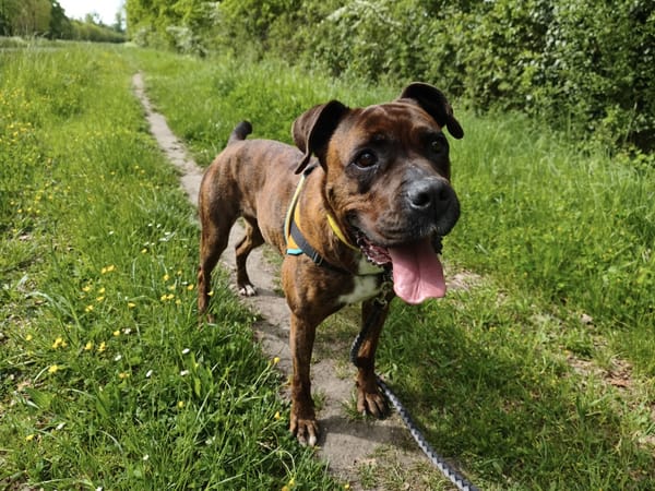 C’est une chienne active qui a besoin de se dépenser régulièrement. Des promenades, des jeux et du temps partagé feront son bonheur. Elle appréciera une famille présente, dynamique et aimante. Takita est une adorable croisée Boxer de 3 ans, joyeuse, tendre et pleine de vie. Elle comblera de bonheur une famille sans autres chiens, prête à lui offrir amour et activités !