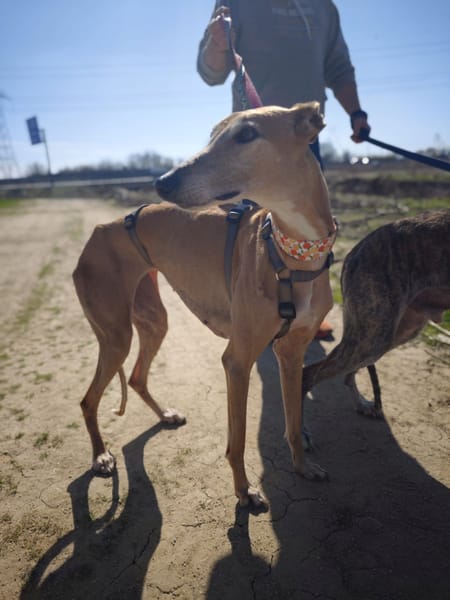 Je suis une petite lévrier idéale pour une famille recherchant une compagne calme, douce et facile à vivre, qui saura évoluer encore davantage dans un environnement rassurant