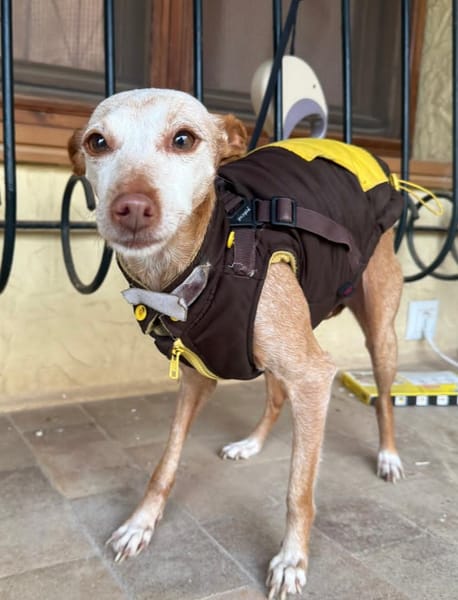 FOXY marche parfaitement et peut se promener sans problème, même si elle n'est pas faite pour les longues randonnées. Cela correspond d'ailleurs parfaitement à son caractère, FOXY est une chienne très calme, idéale pour une personne ou une famille menant une vie paisible : des promenades, quelques courses, puis un retour à la maison pour se reposer ou profiter du soleil.