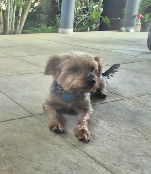 Lady est une petite yorkshire de 3 ans et 4,6 kg. Lady est adorable, sociable chiens, chats on ne sait pas. Elle aime bien jouer avec les copains et profiter de grandes séances de câlins