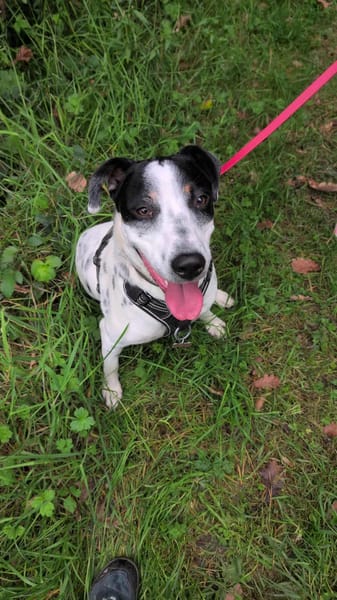 Malgré mon handicap, je suis un vrai rayon de soleil ! Je déborde de joie, j'adore la vie plus que tout. Je comprends tout et très vite. Chaque jour, je pars fièrement en balade jusqu'à 1h/1h30 maximum, la queue en fête et le cœur rempli de bonheur.