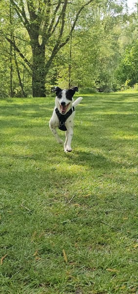Malgré mon handicap, je suis un vrai rayon de soleil ! Je déborde de joie, j'adore la vie plus que tout. Je comprends tout et très vite. Chaque jour, je pars fièrement en balade jusqu'à 1h/1h30 maximum, la queue en fête et le cœur rempli de bonheur.
