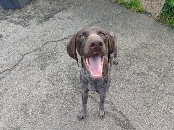 Atom est un jeune braque plein de potentiel, né le 26 juin 2025. Il est arrivé au refuge avec son frère Aladin après avoir été abandonné par leur propriétaire, qui faisait de l’élevage et n’a pas réussi à les vendre.