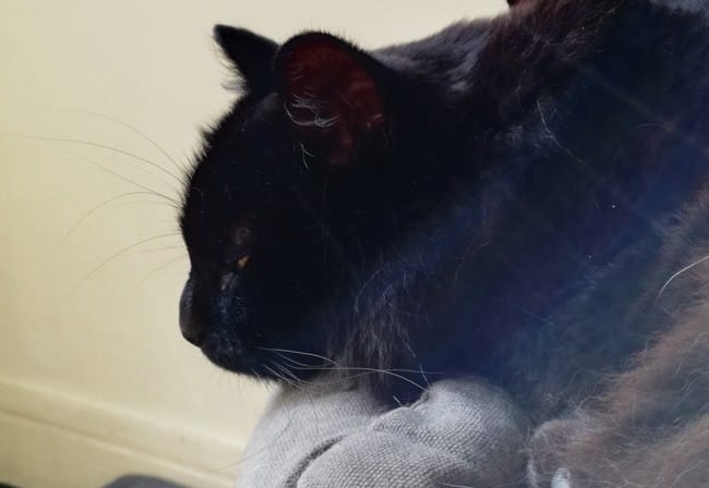 En vrai elle a vraiment un pif un peu bizarre, comme s'il avait été cassé mais je soupçonne plus un problème de raccord entre ses gènes de persan (je pense vraiment qu'elle en a vue sa morphologie) et ceux de chat de gouttière.
