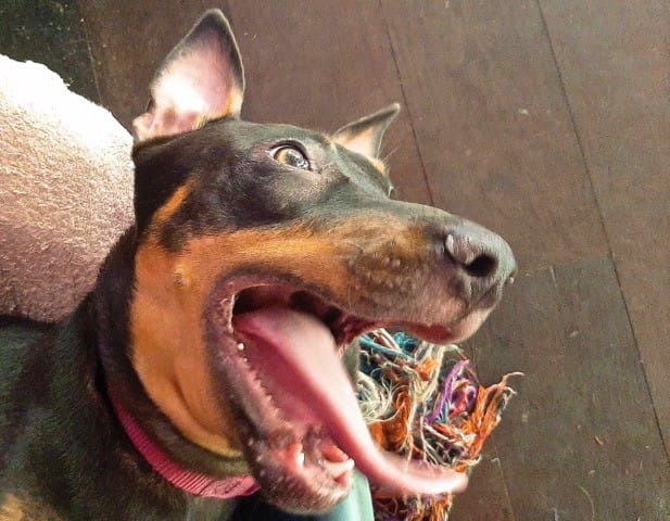 Cet air niais ... Cette langue qui sort en vrac ... Ces yeux fous et cette incohérence générale 😁 pas besoin en effet d'avoir le pedigree de la belle , les Dobs sont des andouilles en puissance ... Visiblement on sait de quelle race elle tient rien qu'en la voyant !