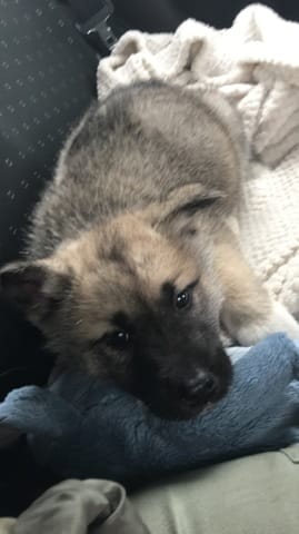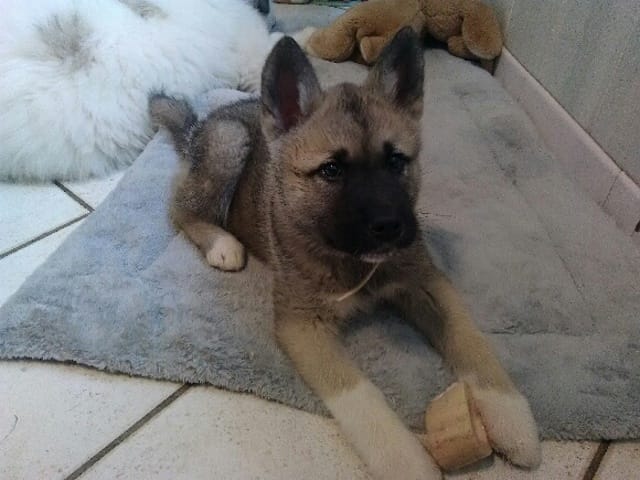 Bonjour, mon chiot, un akita américain croisé malamut, a bientôt trois mois et cela fait presque un mois qu’il est à la maison.