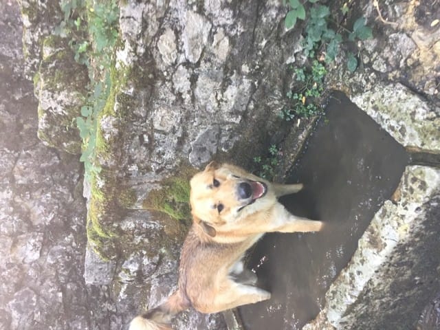 Nous l'avons rencontré et promené à plusieurs reprises et il est très agréable, assez calme mais curieux, ne tire pas trop, n’aboie pas, a une petite base d'éducation (il connait "assis"...), très bien avec l'humain.