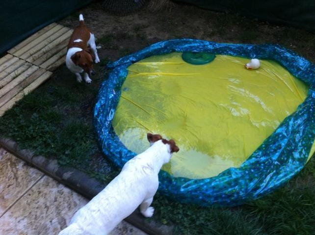 Une petite photo pour la route. J'ai fait la bêtise d'acheter une piscine gonflable pour mes zozos hier, qu'ils ont déchiqueté en 5 min (à peine le temps de la remplir). :D [