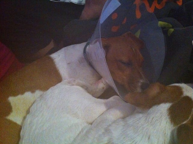 J'ai une question si vous avez des solutions: sa collerette la dérange (elle essayé de l'enlever) et le petit chenapan de jackpot essayé de la lui enlever et il a presque réussi ce matin.