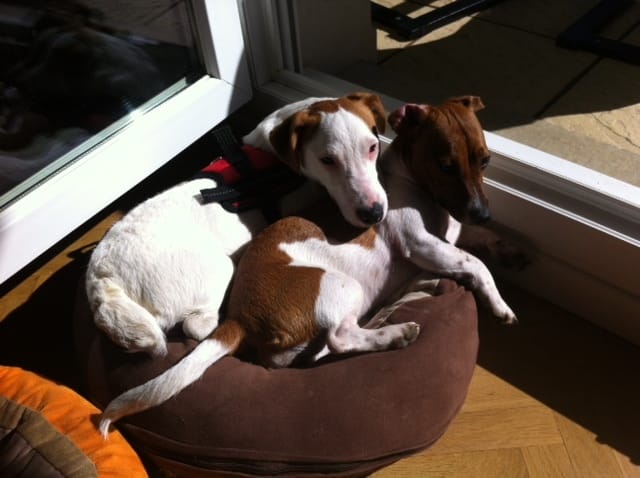 En attendant, voici les dernières photos prises le wkend avec les monstres sur le canapé en train de jouer avec un truc qu'il m'avaient volé pendant que je faisais le ménage :D et une autre photo pendant qu'ils bronzaient dimanche (il y a eu un temps estival!!).