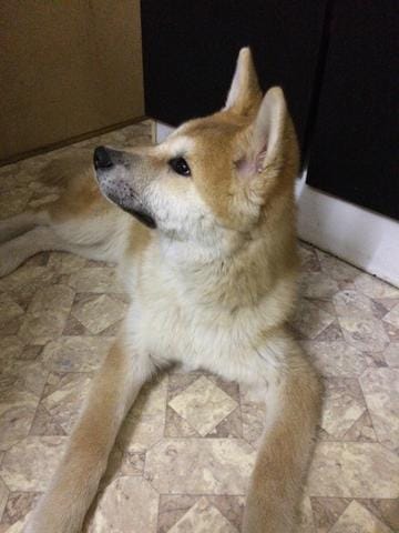 Voilà la petite chérie arrivée chez moi avec un jour d'avance ! Elle est très calme et visiblement assez déprimée d'avoir quitté ses amis. Le premier contact avec mon chat n'a pas été très sympathique, Ayume est très sociable a première vue elle a été lui dire bonjour mais mon chat apparemment n'a pas apprécié ! Coup de patte avec griffure et couinement de mon chien ! J'ai eu très mal au coeur sur le coup… mon chat a été se réfugier en haut, elle est a présent a plus d'un mètre du chien et elle l'observe, j'espère que ça s'arrangera.