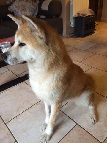 Voilà la petite chérie arrivée chez moi avec un jour d'avance ! Elle est très calme et visiblement assez déprimée d'avoir quitté ses amis. Le premier contact avec mon chat n'a pas été très sympathique, Ayume est très sociable a première vue elle a été lui dire bonjour mais mon chat apparemment n'a pas apprécié ! Coup de patte avec griffure et couinement de mon chien ! J'ai eu très mal au coeur sur le coup… mon chat a été se réfugier en haut, elle est a présent a plus d'un mètre du chien et elle l'observe, j'espère que ça s'arrangera.