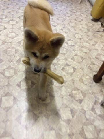Voilà la petite chérie arrivée chez moi avec un jour d'avance ! Elle est très calme et visiblement assez déprimée d'avoir quitté ses amis. Le premier contact avec mon chat n'a pas été très sympathique, Ayume est très sociable a première vue elle a été lui dire bonjour mais mon chat apparemment n'a pas apprécié ! Coup de patte avec griffure et couinement de mon chien ! J'ai eu très mal au coeur sur le coup… mon chat a été se réfugier en haut, elle est a présent a plus d'un mètre du chien et elle l'observe, j'espère que ça s'arrangera.