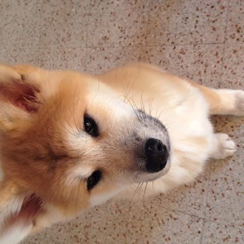 Voilà la petite chérie arrivée chez moi avec un jour d'avance ! Elle est très calme et visiblement assez déprimée d'avoir quitté ses amis. Le premier contact avec mon chat n'a pas été très sympathique, Ayume est très sociable a première vue elle a été lui dire bonjour mais mon chat apparemment n'a pas apprécié ! Coup de patte avec griffure et couinement de mon chien ! J'ai eu très mal au coeur sur le coup… mon chat a été se réfugier en haut, elle est a présent a plus d'un mètre du chien et elle l'observe, j'espère que ça s'arrangera.