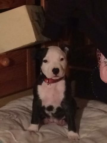 La mienne est une staffy croisé amstaff et a ses deux mois elle pesait 3 kg
