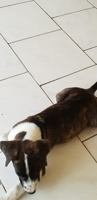 On ne pourra que spéculer, il ne ressemble clairement à aucune race(j'aurais même pas dit staff sur les photos, mais plutôt chien de chasse).