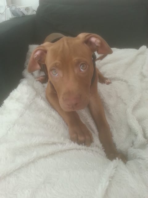 C'est en fait une american pitbull terrier, race interdite en France depuis 99, qui m'a été vendue en tant que american staffordshire terrier.