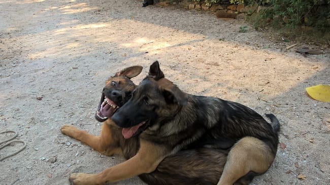 Je me nomme Loki, je suis une femelle issue d'un croisement entre un berger allemand (ma mère) très grosse (costaud) de couleur yellow (je trouve cela bizarre car pas la robe classique noir et feu) et d'un berger malinois (mon père) qui est peut-être pas pure race.