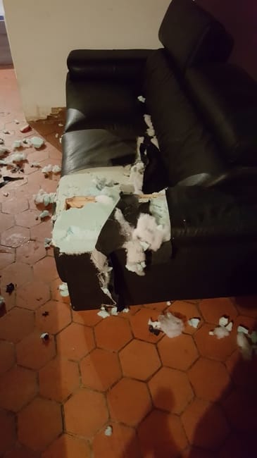 Elle a 6mois c'est un BA , quand nous sommes à la maison il n'y a aucun soucis elle ne fait pas de bêtise mais quand nous partons .. c'est une horreur , elle fait ses besoin partous , mange tous (nous en sommes à notre 2eme canapé en 2mois) tous ce qu'elle trouve elle le détruit, mais vraiment tous ! Je sais plus quoi faire , elle connaît tous les ordres de bases , au pied ,assis donne la patte, marcher en laisse , elle écoute quand on lui donne un ordre comme d'aller à son panier mais je comprend pas pourquoi elle fait sa quand nous partons, en plus de sa elle n'est pas toute seul , j'ai un autre berger qui est bien éduquer et qui est avec elle aussi , et elle a des jouet aussi !