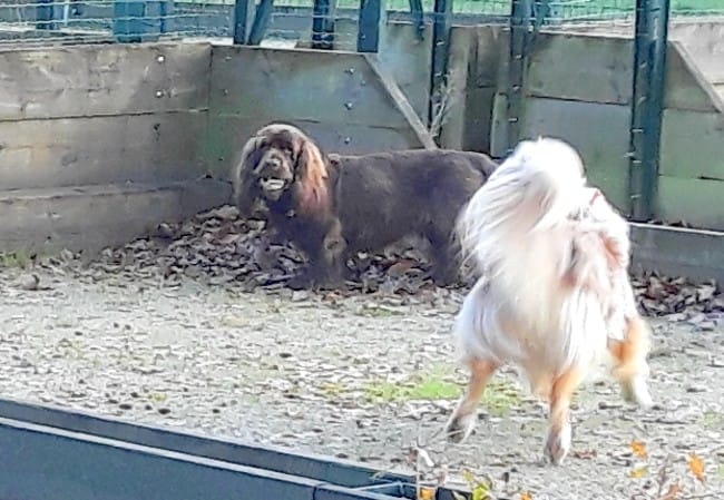 Elle s'est finalement laissée convaincre; sauf qu'elle lui disait "Non" toutes les * secondes à chaque initiative que le chien tentait. Finalement elle s'est laissée convaincre de garder ses Non pour une situation de vrai danger et le chien s'est super bien amusé même si ma vieille spaniel n'est pas du tout joueuse, le chiot a un peu profité de la vie ce jour là
