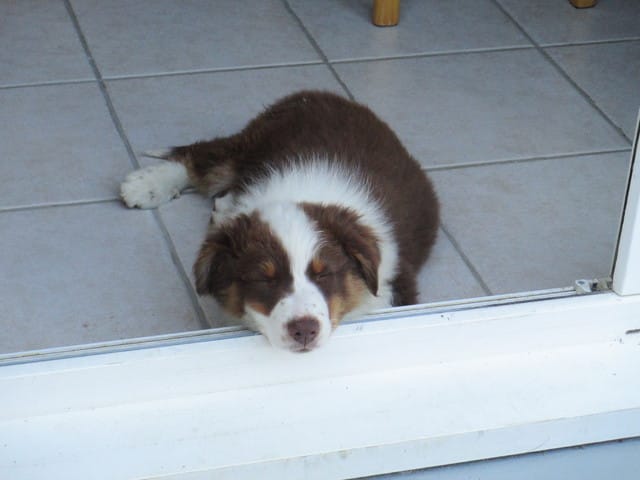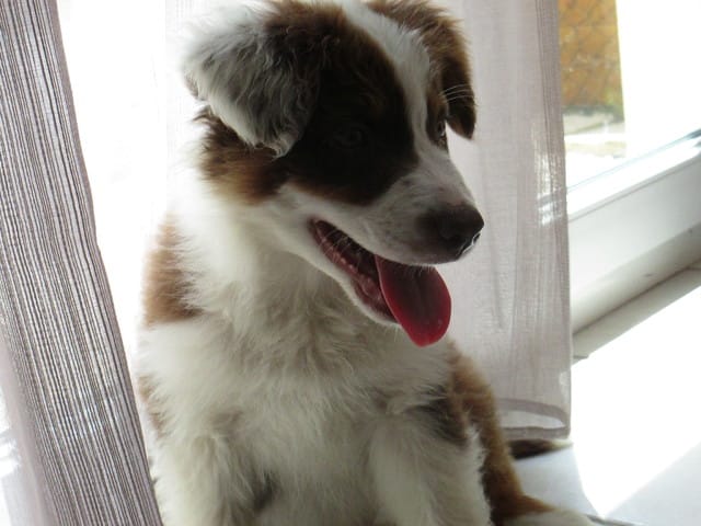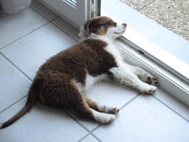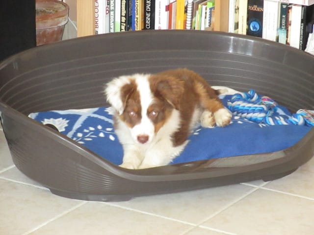 Je vous mets quelques petites photos de son premier jour chez nous. (il est un peu sale car chez sa maman il a passé la matinée dehors et s'est roulé dans la terre après s'être vidé sa gamelle dessus...)