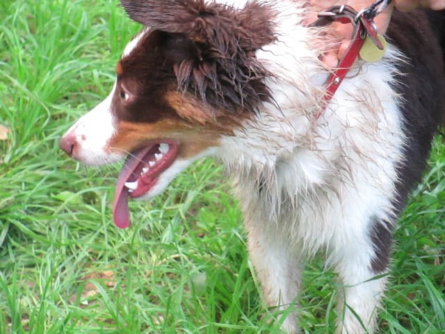 Le collier et la laisse, ça ne lui plait pas trop pour l'instant, même s'il s'habitue petit à petit.