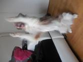 Quand il montre ne serait ce qu'un brin d'agressivité, hop je le met sur le dos en mettant ma main sur le coup pour qu'il comprenne que c'est moi qui commande.