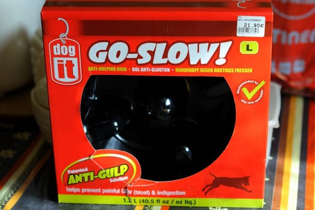Voilà, notre petit glouton avale toujours sa gamelle en 30 secondes chrono et après avoir testé différentes techniques : boule pétanque, eau dans les coquettes, lui retirer à plusieurs reprises pendant son (très court !) repas pour qu'il aille moins vite... Nous ne savons plus vraiment quoi faire !