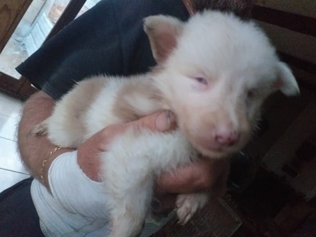 J'ai reçu des photos du chiot aujourd'hui et donc à l'âge ci dessus. Ses yeux me paraissent étranges et je me suis donc interrogé.