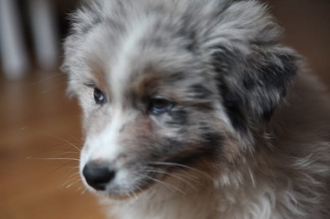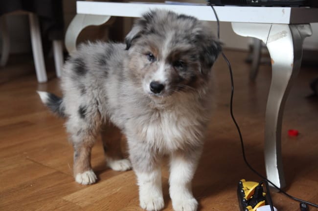 Bonjour alors voilà comme beaucoup le savent j'ai accueillie un petit chiot mâle de 2 mois , c'est un Berger Australien Miniature de couleur Bleu Merle ^^. Sur ce topic je mettrais des photos du loulou ( si j'y arrive car monsieur bouge tout le temps )