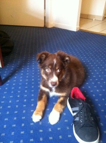 Alors Jango faisait environ 6kg vers 2,5 mois-3 mois (berger australien). Aujourd'hui, bientôt six mois et 11 petits kilos seulement... D'après la véto il sera plutôt du gabarit border... On verra bien :)