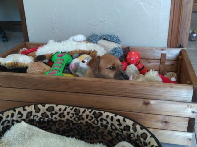 Ohhhhh tibidou caché dans le coffre à jouet !