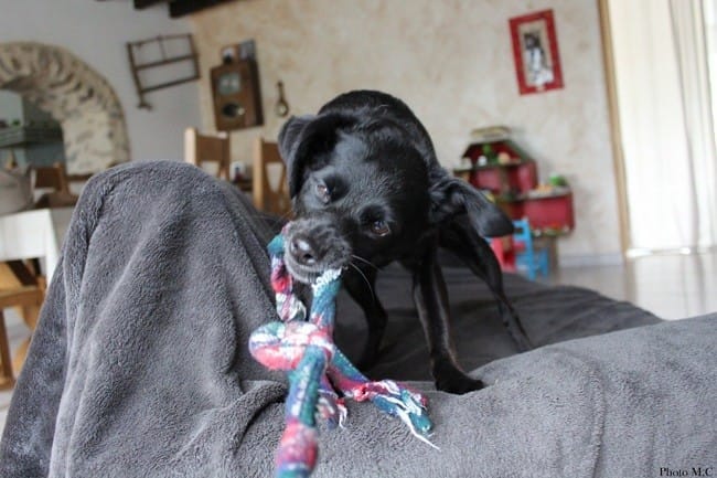 Celle-ci est marrante, elle émet un petit sifflement au lancé, mais vraiment léger mais assez pour attirer l'attention du chien: