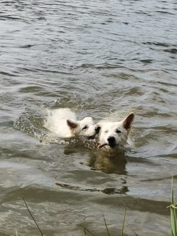 Fière de mes deux blancs , Delta et Sham.