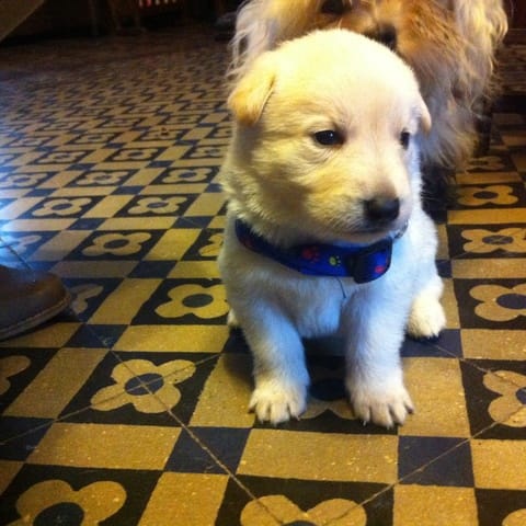 il a une tête de labrador un petit peu plus! on verra bien en grandissant :) adorable! j'ai très hâte d'avoir mon berger allemand aussi! Je l'aurai vers le 3-4 décembre :3