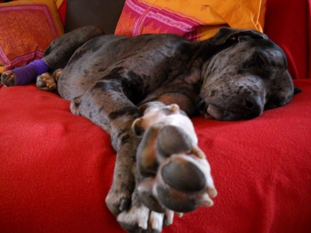 Un de nos dogues allemands AVEC QUADRUPLE FRACTURE D'UNE PATTE ( se l'était claquée contre le bras d'une remorque en courant vite et dans le noir ), est revenu aussi en sprint. Je ne sais par quel prodige d'ailleurs. A l'arrêt, il la tenait en l'air.