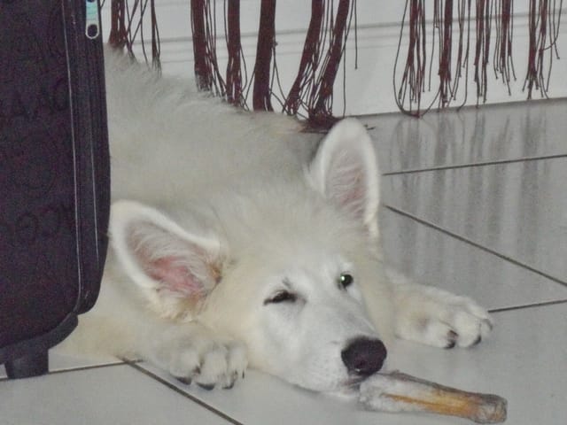 Sinon une question: mon chien mange régulièrement des os en peau de buffle et ça lui tâche les pattes (cf photo). Connaissez vous un moyen/astuce pour faire partir les tâches? (Le toiletteur n'a pas suffit...). Merci et à vos claviers!