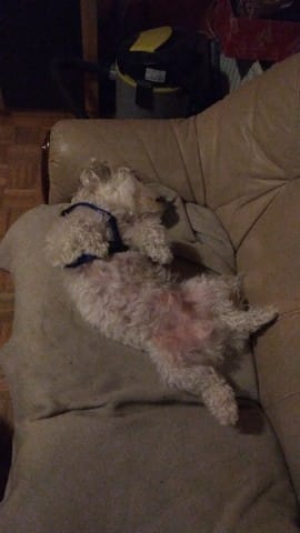 Un ami possède une chienne qui ira sur ses 2 ans à la fin de l'année. C'est un berger blanc suisse. Comme beaucoup de chiens, elle adore se faire caresser le ventre.