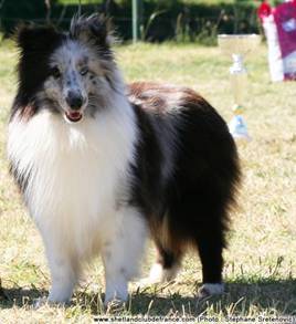Dans moins d'un mois je vais enfin avoir ma petite Jolly's tant attendu. C'est une petite femelle Shetland bleu bicolore avec de magnifiques yeux bleus. J'aimerais la faire confirmer plus tard cependant je me demande si le noir dominant sur sa patte arrière et sur son œil ne sont pas éliminatoire pour un bleu bicolore? Pouvais-vous me renseigner?