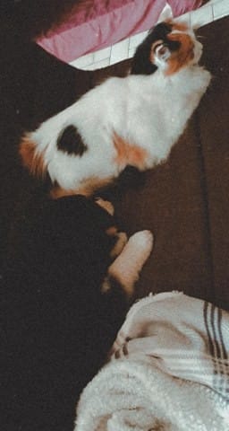 Cependant, elle m'a réveillée plusieurs fois (en couinant ou en essayant de sauter sur la méridienne 😅) afin d'avoir ma main sur elle, un contact, et naturellement j'ai répondu à son besoin afin qu'elle dorme tranquillement (au pied de la méridienne).