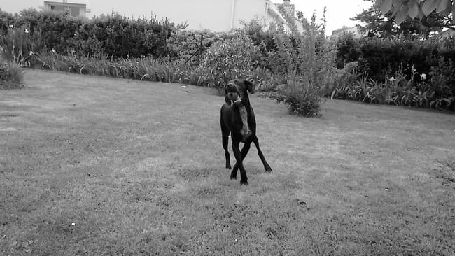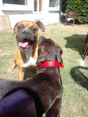 voilà, ça fait déjà plus d'une semaine qu'Angelo est a la maison, il est propre, connaît le "non", il s'habitue aux chats, il est tres pot de colle avec moi et assez distant avec les inconnus (surtout les hommes)