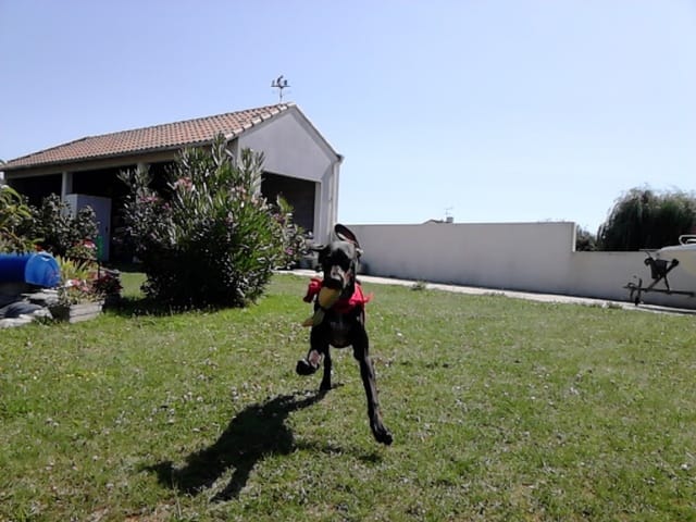 voilà, ça fait déjà plus d'une semaine qu'Angelo est a la maison, il est propre, connaît le "non", il s'habitue aux chats, il est tres pot de colle avec moi et assez distant avec les inconnus (surtout les hommes)