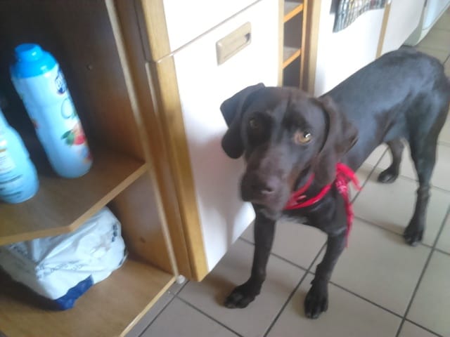 voilà, ça fait déjà plus d'une semaine qu'Angelo est a la maison, il est propre, connaît le "non", il s'habitue aux chats, il est tres pot de colle avec moi et assez distant avec les inconnus (surtout les hommes)