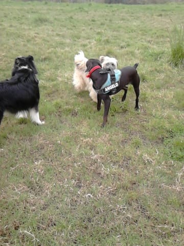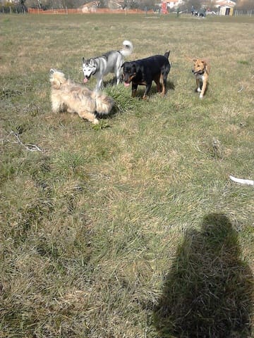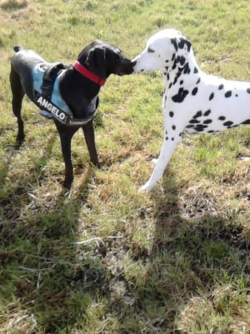 voilà, ça fait déjà plus d'une semaine qu'Angelo est a la maison, il est propre, connaît le "non", il s'habitue aux chats, il est tres pot de colle avec moi et assez distant avec les inconnus (surtout les hommes)