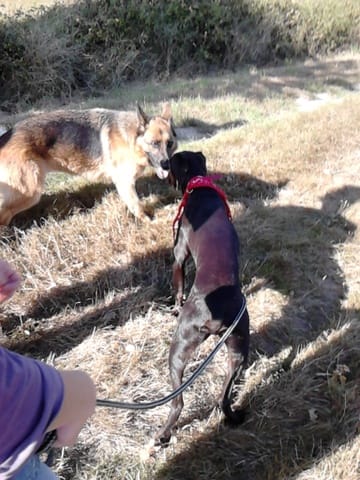 on a commencé l'agility, il arrive bien a sauter, monter sur la table, et passer dans le tunnel mais pour la balancoire et la passerelle il a encore un peu de mal, pareil pour pour le slalom, il a un super bon rappel