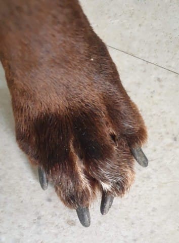 Mon petit braque allemand de 7 mois présente une boiterie occasionnelle à une patte postérieure. Nous avons constaté que le coussinet d'un doigt (3e doigt) s'usait différemment et que la griffe poussait de travers. Cela ne lui fait pas mal quand on le manipule a cet endroit mais le gène quand il marche sur des graviers ou du bitume. La boiterie semble être plus forte quand il a couru ou passé du temps à jouer. La véto nous a dit qu'à priori il se serait cassée une phalange tout petit avant qu'il arrive chez nous, et qu'elle se serait resoudée de travers, d'où la griffe qui ne pousse pas dans le bon axe. Il n'y aurait rien a faire. Nous pensions que égaliser la griffe (dans la limite de la corne "morte" et sur conseil du véto) qui du coup ne s'use pas aussi vite que les autres l'aiderait, mais non. Peut être que c'est une fragilité du coussinet qui le gênerait aussi.