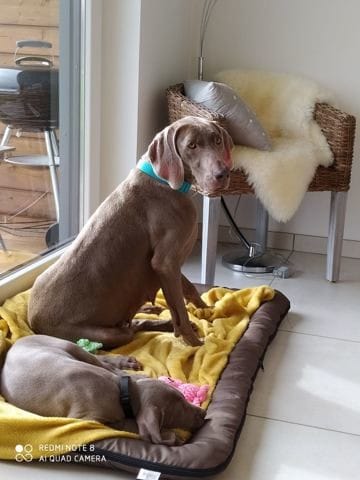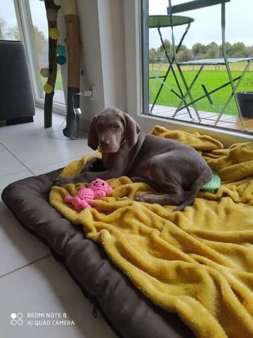 Depuis plusieurs années nous réfléchissions à adopter un braque de weimar poil court, ce sera chose faite à partir du 31 octobre, un petit chiot mâle de deux mois.