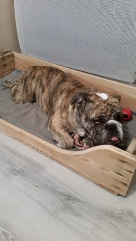 Maintenant présentation de Iona ma femelle Bulldog Anglais de 2ans. C'est une petite femelle que j'ai récupérée fin Août car un couple s'en séparait. C'était mon rêve d'avoir un bulldog anglais et je l'ai réalisé grâce à elle. Elle est, c'est la race qui veut ça, très tétue mais tellement mignonne et caline.