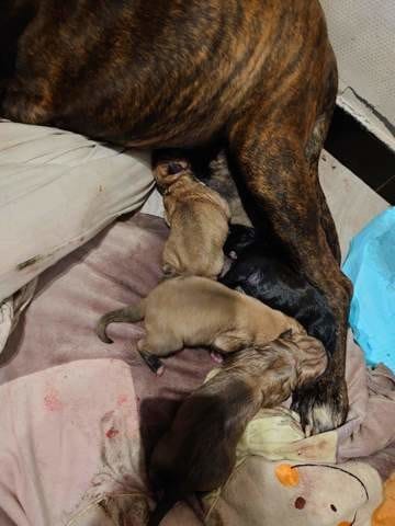 le premier chiot venait au monde à 3h30 donc depuis elle à fait beaucoup d'effort. Les bébés sont né avec 1 semaine d'avance mais tous le monde va bien . En tout cas c'est une maman très brave