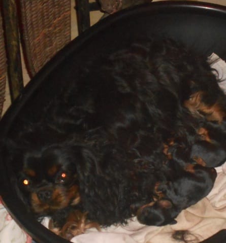 Donc j'ouvre le bal avec ma petite Cavalier; Lady, elle va avoir 4 mois dans 2 jours piles ! Bien sûr, elle est LOF et sous contrat de non reproduction, ce qui me convient parfaitement. ^_^